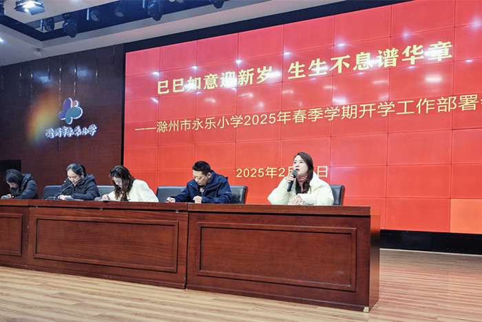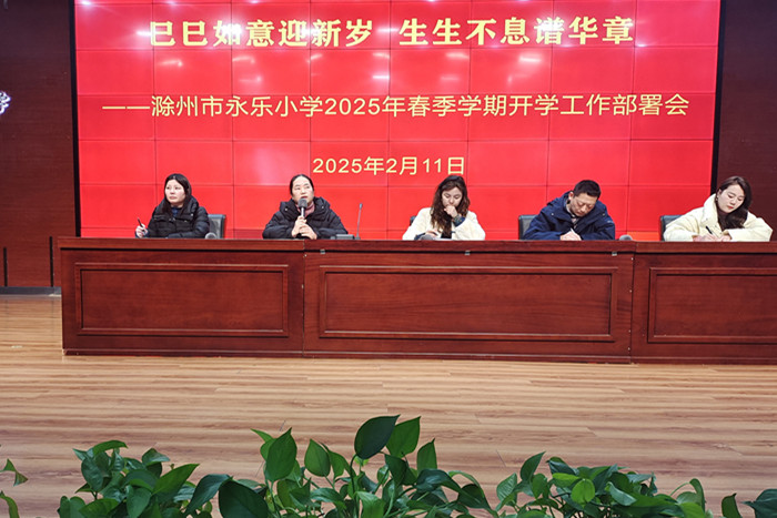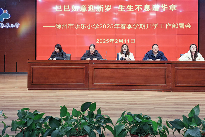 ~ 巳蛇送福开学季,朝气满满启新程。为明确新学期工作方向,凝聚团队力量,确保开学各项工作平稳、有序、高效开展,2月11日,滁州市永乐小学教师以昂扬的精神面貌、饱满的工作热情齐聚“童乐谷”剧场,召开了2025年春季学期开学工作部署会。