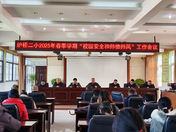 ~ 2025年2月13日中午,定远县炉桥镇第二小学教育集团在行政楼四楼会议室召开了2025春季学期“校园安全和师德师风”工作会议。全体教职工参加了此次会议。