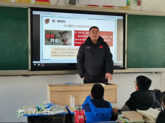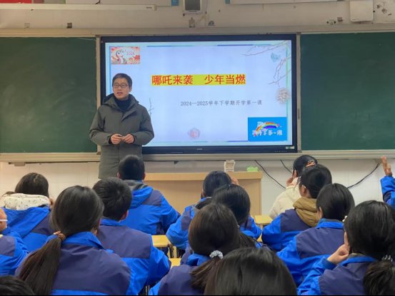 ~ 随后,班主任借助热映电影《哪吒2之魔童闹海》的精彩片段,带领同学们深入剖析哪吒身上勇敢无畏、敢于抗争、不认命的精神内核,并组织小组讨论,鼓励大家结合自身经历,探讨如何在学习和生活中践行哪吒精神。同学们踊跃发言,纷纷表示在新学期面对困难时,也要像哪吒一样,坚定信念、勇往直前。