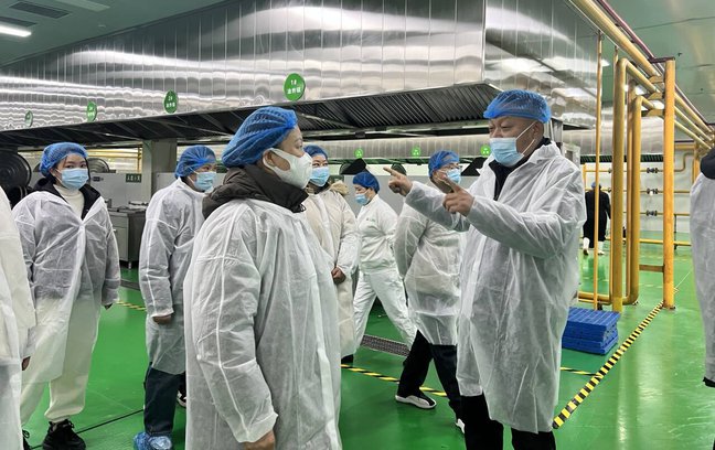 ~ 当天下午,校区负责人齐霞携学校配餐遴选领导小组成员及学校膳食委员会成员一行,分别对梦子膳食配餐公司及禾膳配餐公司和进行了实地考察。考察小组深入两家配餐公司的净菜间、菜加工间、刀具菜墩存放处、餐盒消毒间、打包间等关键区域,全方位了解其运营流程与食品安全保障措施。