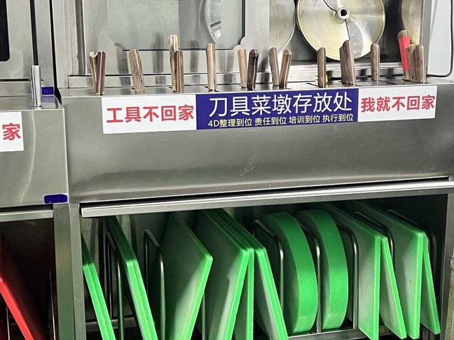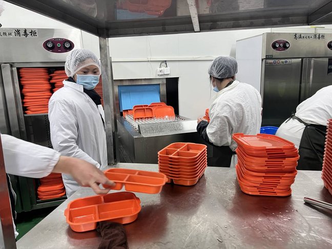 ~ 在净菜间,考察小组看到食材分类存放,标识清晰,清洗设备齐全且运行良好,确保食材在初步处理阶段的卫生安全。菜加工间内,加工设备先进,操作人员着装规范,严格遵守食品加工操作规范,加工流程科学合理,有效避免交叉污染。刀具菜墩存放处管理严格,分类存放,定期消毒,有专人负责管理,保障使用安全。餐盒消毒间采用先进的高温热风循环消毒设备,消毒效果可靠,消毒流程严格规范,消毒记录完整,保障餐盒卫生达标。打包间操作规范,打包后的餐食密封良好,便于运输且能有效防止二次污染。