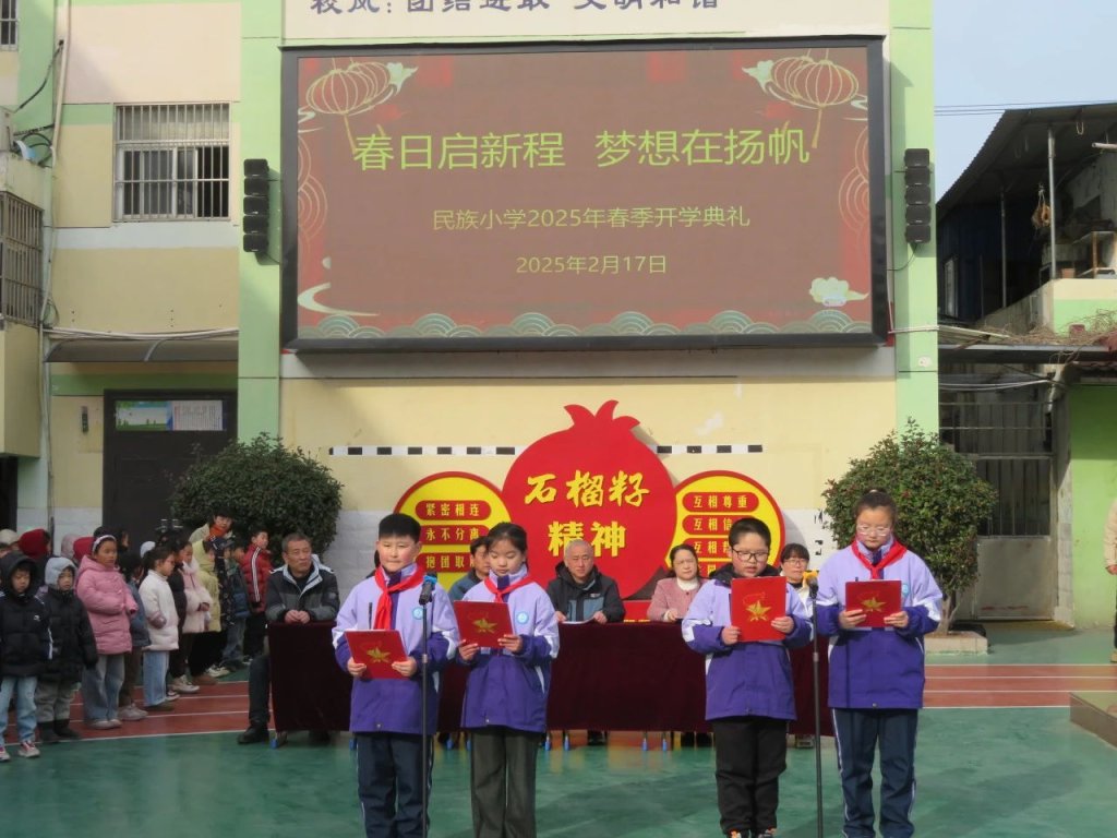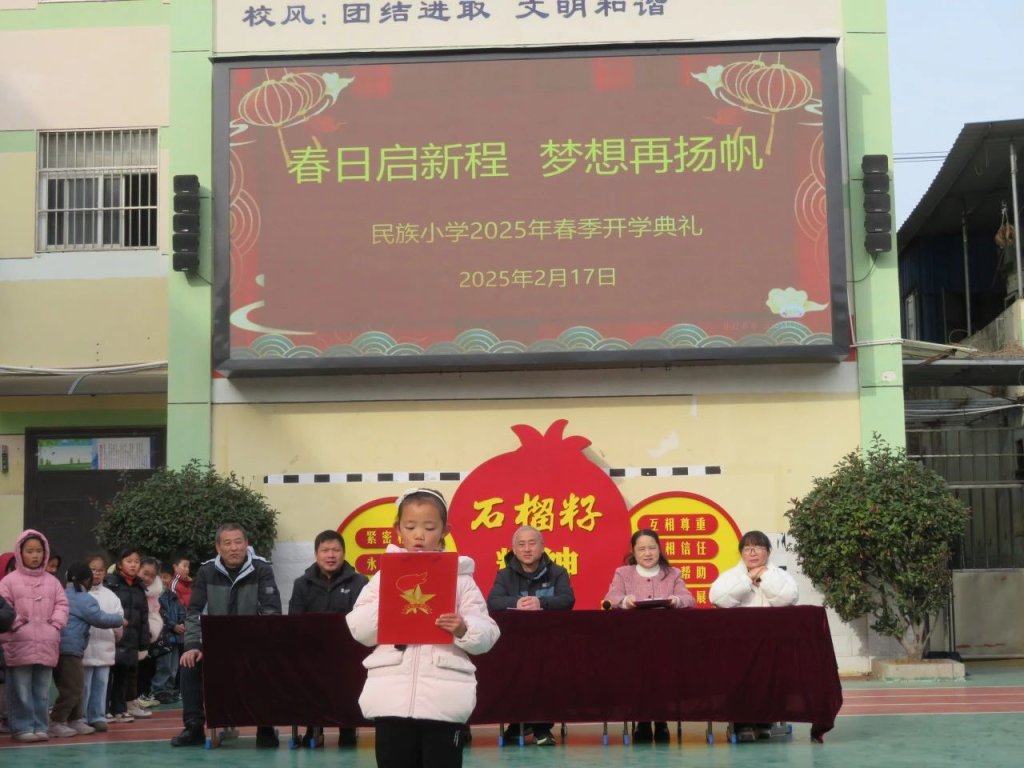 ~ 伴随着阵阵热烈掌声,开学典礼画上完美句号。春风拂校园,逐梦新征程。新学期民族小学全体师生将以更加饱满的热情和昂扬的斗志,迎接新的挑战,追逐新的梦想。