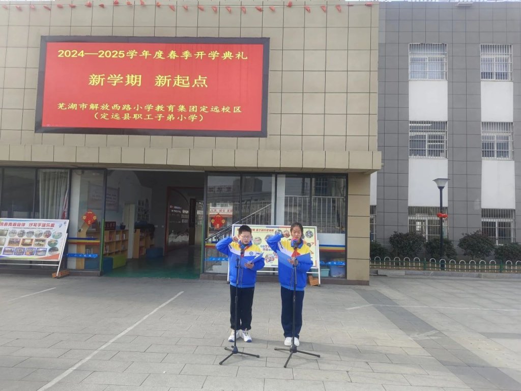 ~ 瑞蛇盘福,岁启新元,2025年2月17日,定远县职工子弟小学全体师生齐聚校园北广场,举行“新学期 新起点”春季开学典礼。