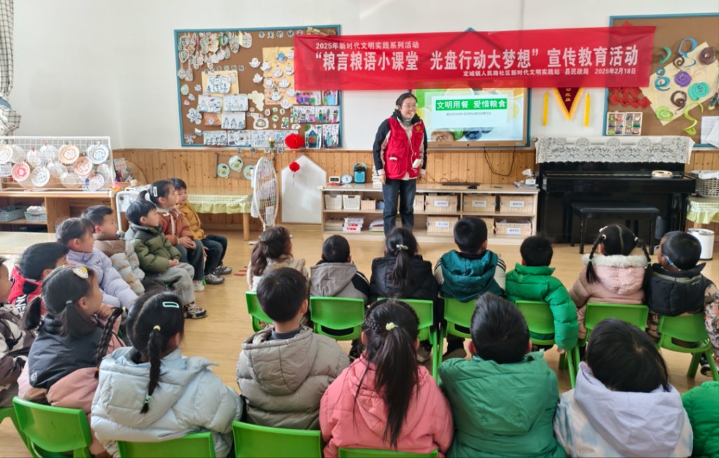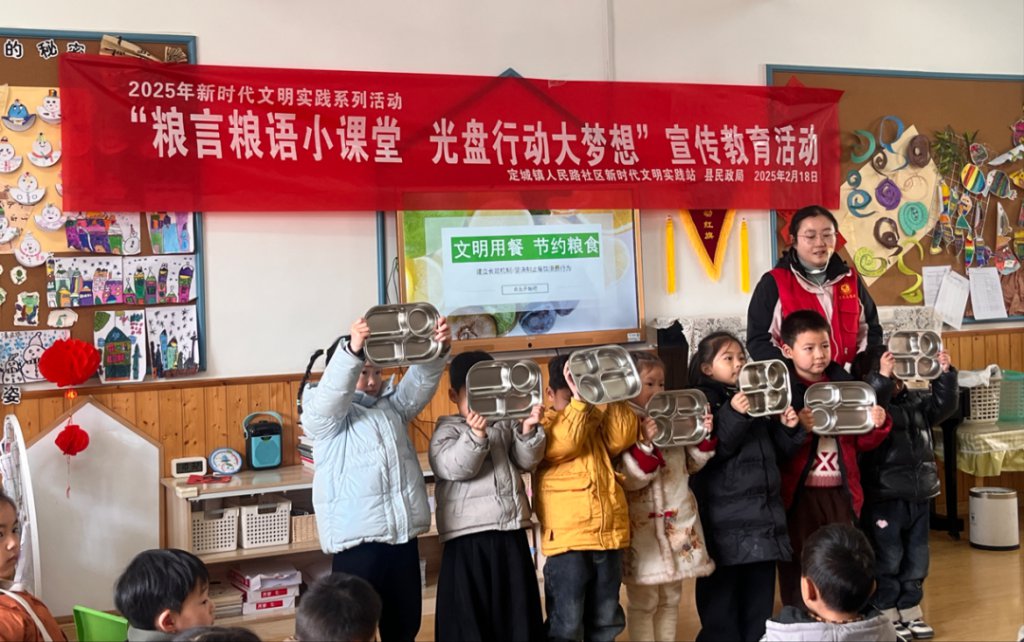 ~ 为了让幼儿从小懂得粮食的来之不易,学会珍惜粮食、杜绝浪费,2月18日,定远县定城镇人民路社区新时代文明实践站联合县民政局走进定远县示范幼儿园开展“粮言粮语小课堂 光盘行动大梦想”为主题的教育活动。