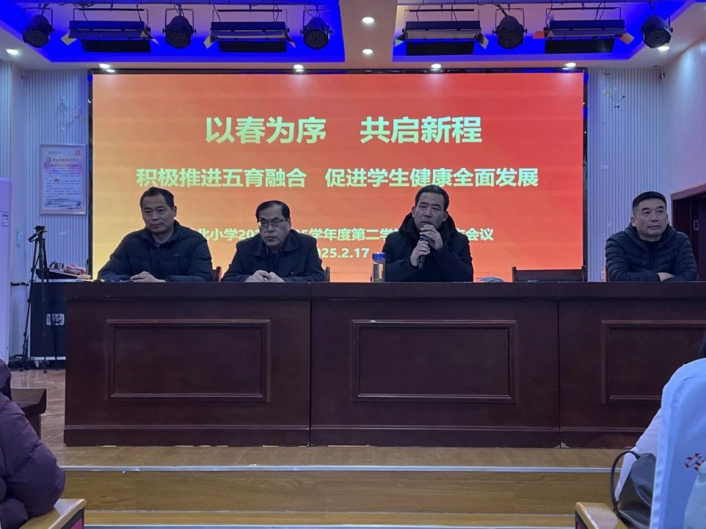 ~ 2025年2月17日,定远县城北小学迎来了以“以春为序,共启新程,积极推进五育融合,促进学生健康全面发展”为主题的春季开学工作会议,全校教职工齐聚一堂,共同为新学期的教育教学工作谋篇布局。
