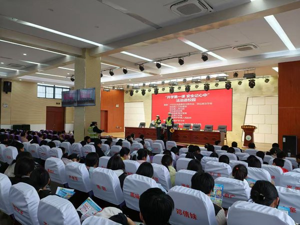 ~ 随后,县公安局交警大队宣讲员围绕“交通安全一盔一带”主题,结合身真实案例,从步行、骑车、乘车安全等方面,解说未佩戴头盔、未系安全带在交通事故中的严重后果。在互动环节中,他们围绕日常出行中的交通安全问题与同学们展开交流,大家积极互动,交警队长耐心解答,现场气氛热烈。 县司法局宣讲员以“校园防欺凌和预防未成年人犯罪”为主题,结合视频,生动地讲解校园欺凌行为的表现形式、产生原因以及严重危害。让同学们深刻认识到校园欺凌绝非小事,它会对受害者的身心造成极大伤害,人人要第一时间学会保护自己。县法院宣讲员运用通俗易懂的语言和生动的案例,深入浅出地进行讲解,指导学生做到学法、知法、守法。最后,县委政法委执法监督室主任进行了总结讲话,现场气氛热烈,掌声雷动。