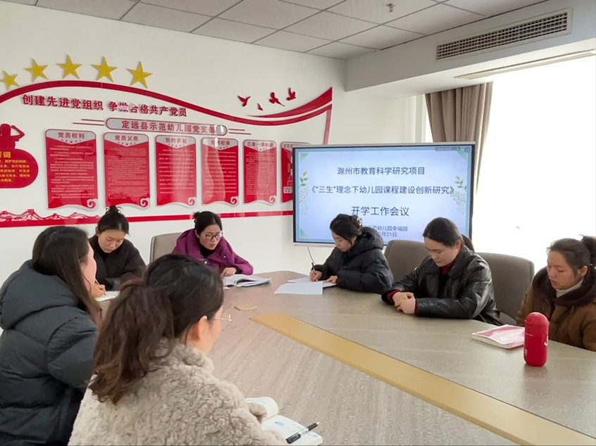 ~ 春意渐浓,又是新学期的新起点。为了进一步指明新学期的课题研究方向,坚定各课题组成员砥砺前行的步伐,确保幼儿园教育科研工作的有序开展,定远县示范幼儿园幸福园于2025年2月21日召开《三生”理念下幼儿园课程建设创新研究》开学工作会议,课题组全员参加此次会议。