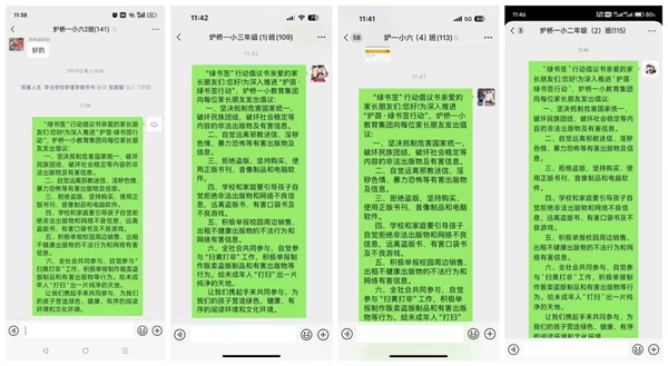 ~ 活动伊始,学校利用班群宣传,向家长和学生普及“护苗”行动的重要意义,分享辨别非法出版物和有害信息的方法,提升大家的防范意识。