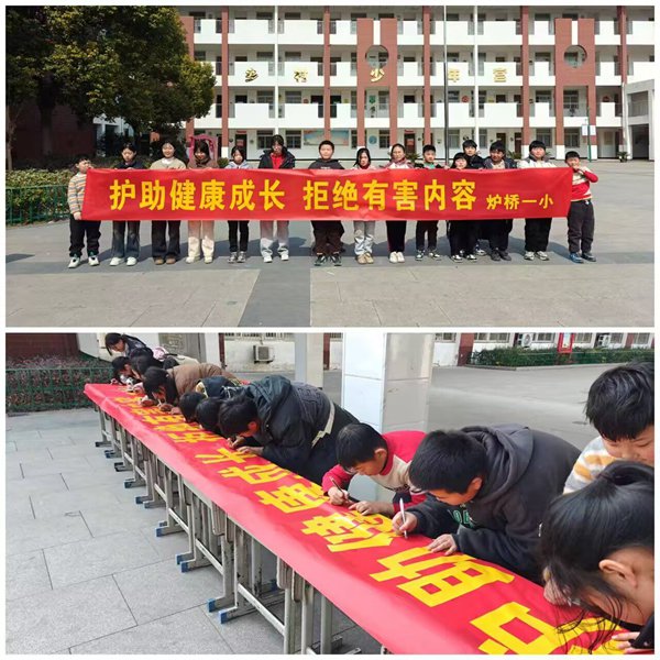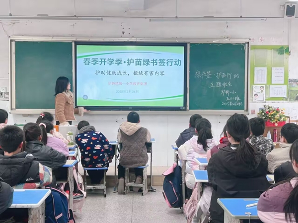 ~ 为护助青少年健康成长,营造清朗文化环境,2025 年 2 月 25 日,定远县炉桥镇第一小学教育集团积极开展2025年春季开学季“护苗·绿书签行动”主题宣传活动。活动形式多样,成效显著。