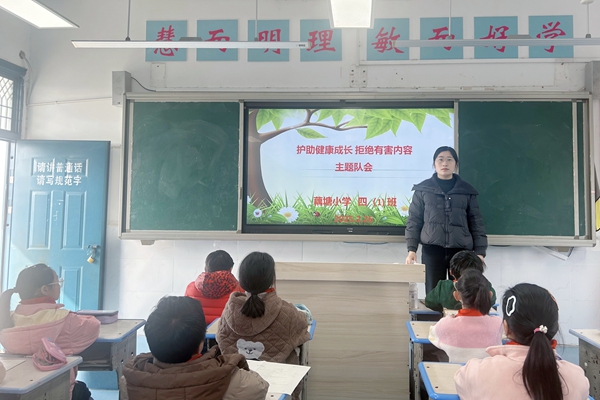 ~ 随后,各班级召开“护助健康成长,拒绝有害内容”主题队会,观看护苗教育片。通过案例讲解和视频展示,学生们深入了解“护苗”内涵,自觉抵制不良文化,培养良好阅读与上网习惯。高年级学生还参与“绿色阅读,文明上网”征文比赛和“护苗”绿书签设计活动,将创意与行动结合。该校还利用电子屏宣传标语,营造浓厚氛围。