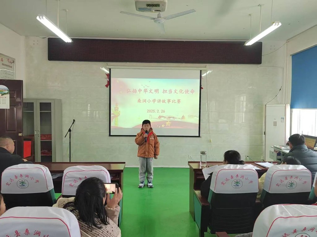 ~ 为了进一步弘扬中华优秀传统文化,培养学生的民族自豪感,2月26日下午,定远县桑涧小学在道德讲堂举行以“弘扬中华文明 ,担当文化使命”为主题的第32届青少年爱国主义讲故事比赛,24位选手展示了自己的风采。