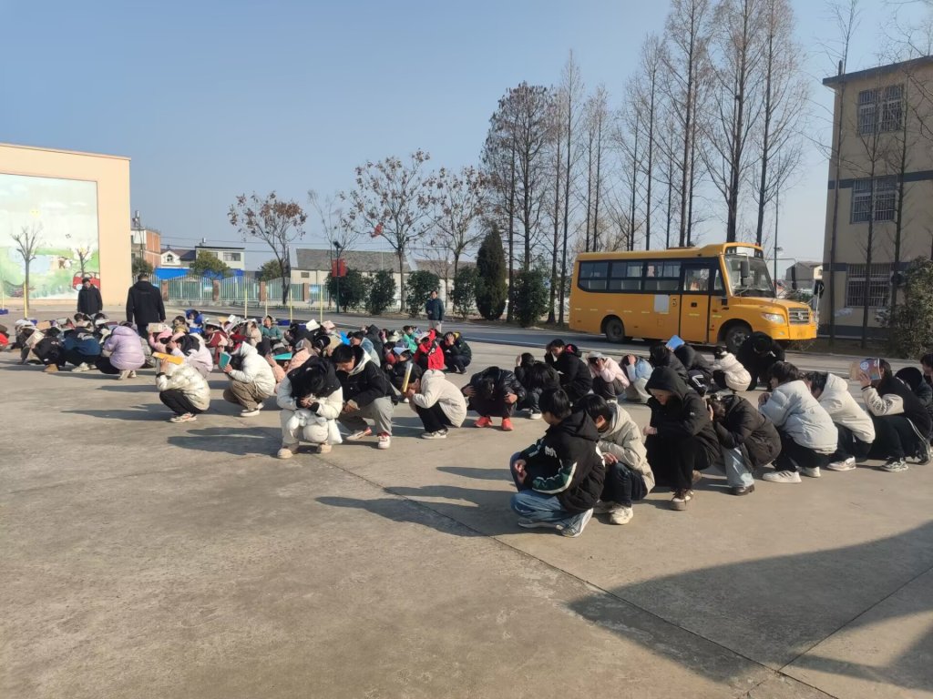 ~ 随着警报声的骤然响起,演练正式开始。该校师生立即停止教学活动,迅速躲到课桌下,用双手护住头部和颈部,蜷缩身体,降低身体重心,尽可能减少伤害;疏散指令响起后,在老师的带领下,学生们弯腰、护头,迅速有序地沿着指定疏散路线快速撤离。到达广场后,各班迅速集合,班主任立即清点人数并上报,确保无一人遗漏。整个演练过程紧张有序,各班主任和工作人员坚守岗位,确保每一位学生的安全。最后,赵玉生副校长对本次演练活动进行了总结讲话,强调了防震避震的常识和寒假期间交通安全、防溺水教育、居家安全和防欺诈等一些安全问题。