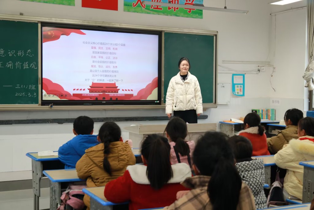~ 为更好帮助队员们把好正确意识导向,提高意识形态鉴别力,自觉践行社会主义核心价值观 ,2025年3月3日,定远县永康小学教育集团组织开展了“强化意识形态教育 树立正确价值观”为主题的班队会活动。