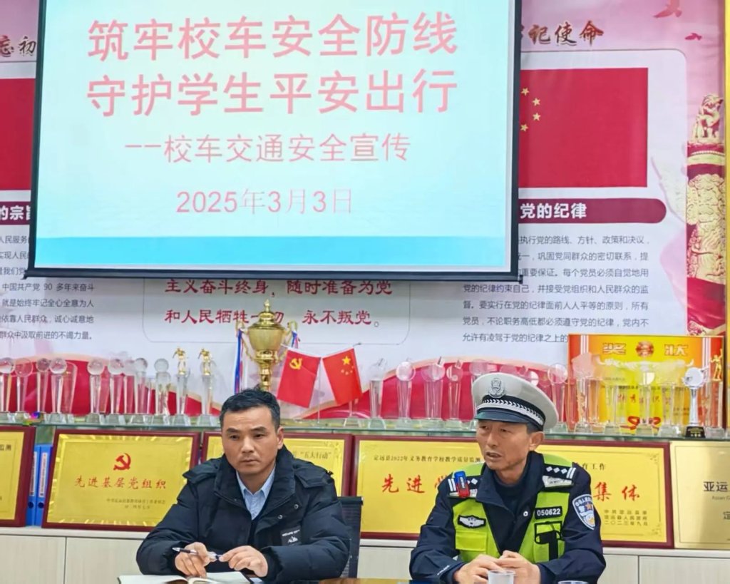 ~ 3月3日,定远县交警大队宣教股杨庆元、校车公司陈书勇等走进桑涧小学,聚焦校车安全,针对驾驶员与照管员开展了一场专业且深入的宣传教育活动,全力为学生的上下学之路筑牢安全防线。