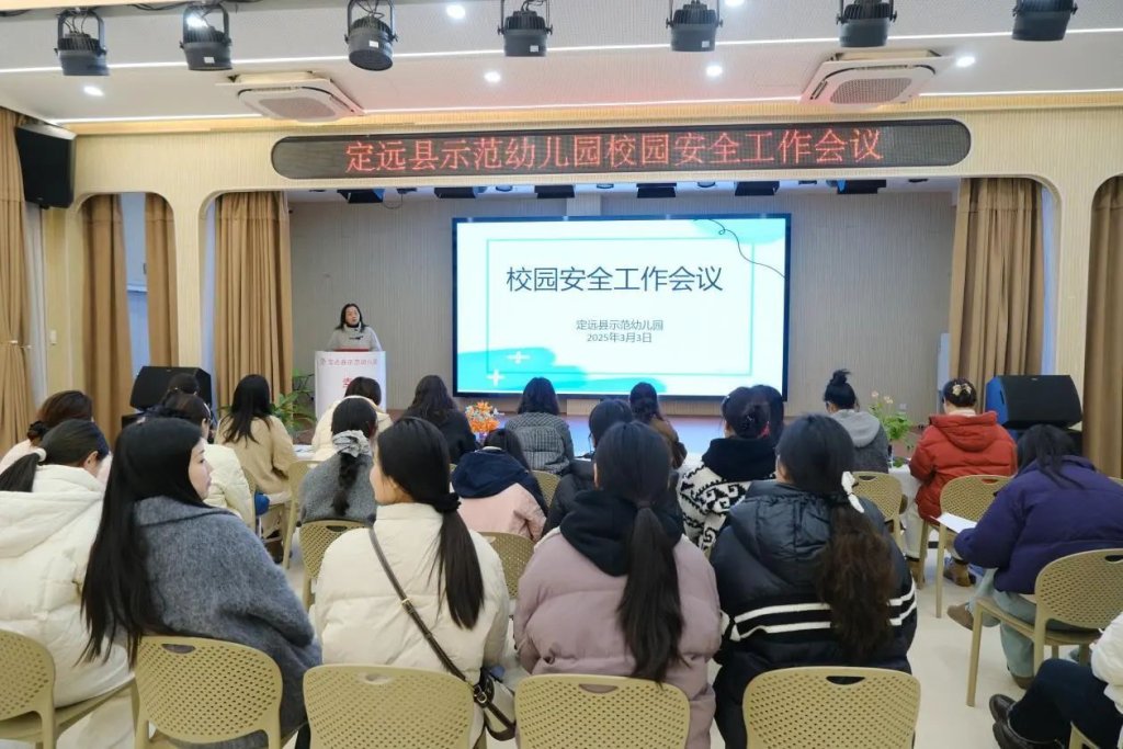 ~ 为切实做好安全工作,确保幼儿园各项工作安全、平稳、有序开展,定远县示范幼儿园于2025年3月3日召开校园安全工作会议,定远县示范幼儿园园长金俊、后勤副园长周月娥、安全办主任张霞、各园督导领导、各园执行园长及教师参加会议。