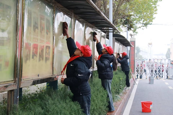 ~ 活动中,党员教师带领少先队员们,在学校街道两旁树丛中,义务捡拾杂物、擦拭宣传栏、清理死角垃圾。队员们把垃圾一点点捡拾干净,将学校周边变得更加整洁,为学校周边环境美化贡献自己的一份力量。