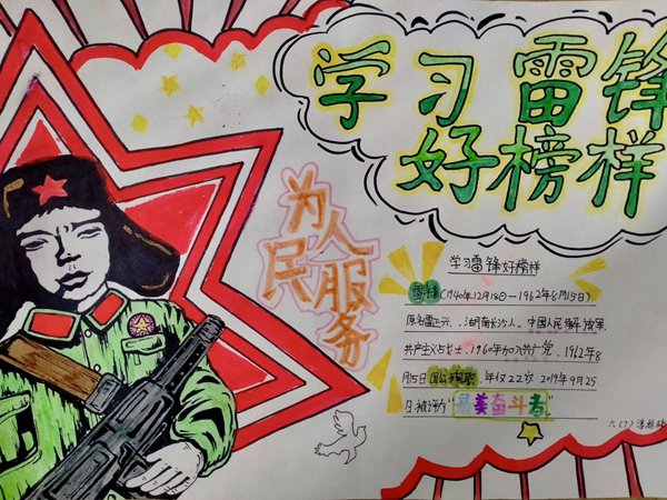 ~ 手抄报和黑板报的创作过程中,同学们充分发挥自己的想象力和创造力,用生动的文字和精美的图画展现了雷锋的光辉形象和感人事迹,营造出浓厚的学习氛围。