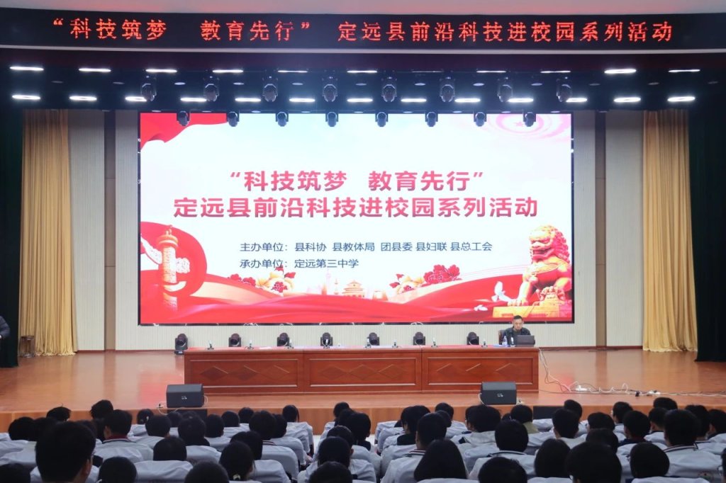 ~ 3月7日,由县科协、县教体局、团县委、县妇联、县总工会主办的“定远县前沿科技进校园系列活动”走进定远三中。高校IT工程师、人工智能教师陶亮受邀在学校惟真讲堂作专题报告,高二年级部分师生参加了活动,活动由副校长王志国主持。