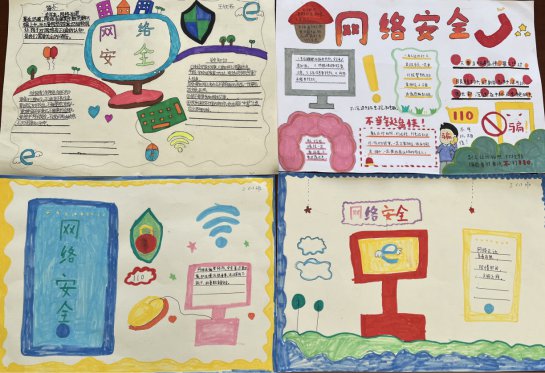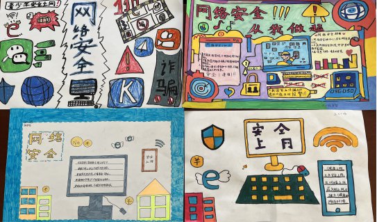 ~ 学校同步开展了网络安全手抄报评比活动,共收到128余份作品。学生们用彩笔精心绘制了“防网络沉迷警示钟”“信息防护盾牌”等富有创意的主题。各班级将这些图文并茂的作品在班级宣传园地展示,学校少先大队则将评选出的优秀作品在校园长廊集中展示,课间时常可见学生们驻足讨论。