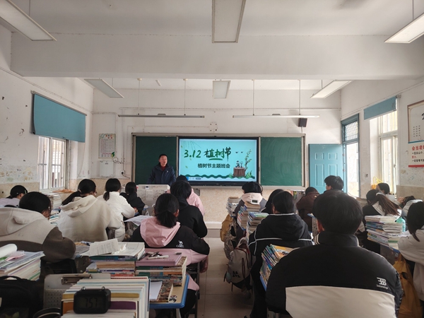 ~ 下午班会课上,各班纷纷召开植树护绿主题班会,向同学们介绍植树节的来历与意义,强调绿色植物可释放氧气、净化空气、保护水源、调节气候、防风固沙、维持生态平衡,有利人类健康福祉,教育引导同学们大力宣传并积极参加植树护绿活动,增强节约环保意识,坚持绿色生产生活方式,为建设山清水秀、天蓝地绿的美丽家园贡献力量。(图文:盛少堂;审核:钱维红;终审:蒋安奎)