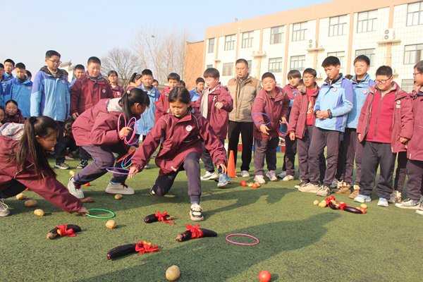 ~ 活动现场热闹非凡,同学们身着统一的校服,个个精神饱满,跃跃欲试。运动会共设置了八个游戏项目,分别是插秧小能手、玉米投掷、南瓜滚滚、推车运粮、番薯大作战、五谷入仓、丰收大套圈和小鸡小鸡快入笼。