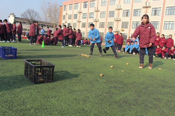 ~ 在插秧小能手项目中,同学们化身小农夫,手持秧苗,在模拟的水田中认真插秧,体验了农民的辛勤劳动。玉米投掷项目中,同学们需要准确地将玉米投进指定的筐中,考验了他们的手眼协调能力和投掷技巧。南瓜滚滚项目则要求同学们五人一组,以接龙的形式滚动南瓜前进,既考验了团队协作能力,又增添了运动的趣味性。