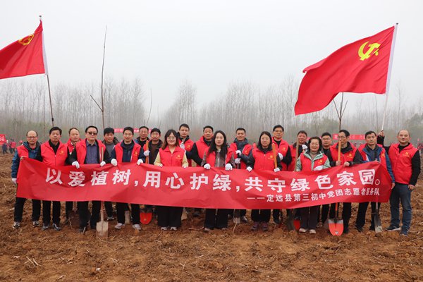 ~ 为了践行绿色发展理念,3月12日植树节当天,定远县第三初中党团员志愿者们积极响应全县植树造林的号召,来到定远县泉坞山森林公园,与其他单位的工作人员一起,共同参与了定远县“履行植树义务、共建美丽中国”义务植树活动,以实际行动为美丽定远建设贡献力量。
