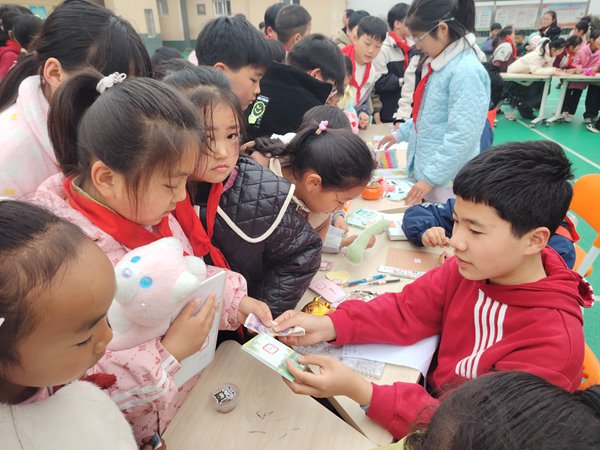 活动于上午9点在操场正式开幕。校长罗培齐在致辞中强调了雷锋精神的内涵,鼓励师生积极参与。随后,各班级的“义卖小天使”迅速就位,将捐赠的书籍、文具、玩具等物品整齐摆放在摊位上。师生们穿梭于各个摊位,挑选心仪的物品,现场气氛热烈。