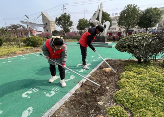 ~ 校长谢庆贵亲自带领学生锄地、松土、浇水、拔草,同学们配合默契,共植青绿,干得热火朝天。株株新绿昂然挺立,在和煦的春风中焕发出勃勃生机。他们不叫苦,不喊累,大家热情高涨,干劲十足,充分发扬团结协作、吃苦耐劳的优良作风。校园里的青草绿树和同学们灿烂的笑容相映成趣,构成了春天一道独特美丽的风景。
