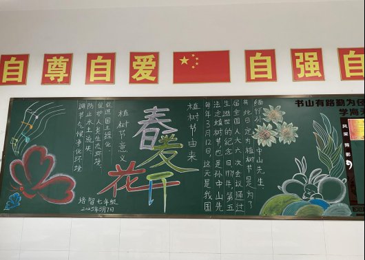 ~ 植树节活动大队部安排了黑板报、手抄报评比,同学们用自己的一双巧手绘画出一幅幅绿意盎然、生机勃勃的春景图,用实际行动和真实情感表达了对大自然的敬意。