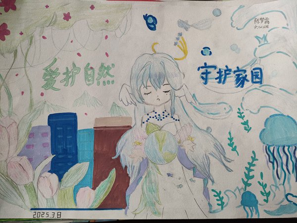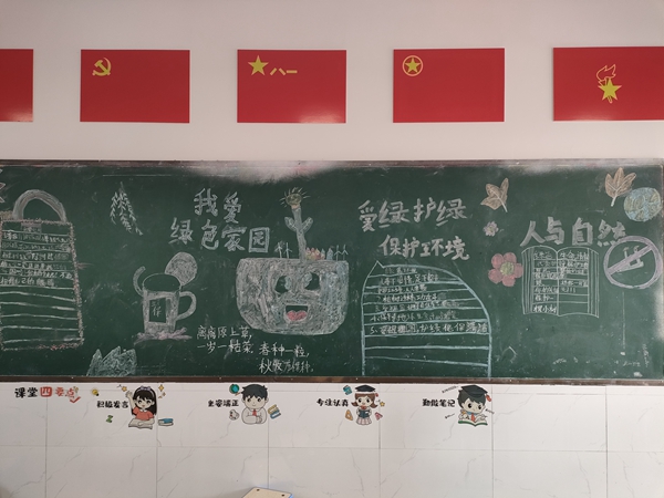 活动中,各班召开主题班队会,引导学生了解植树节的意义,增强环保意识。随后,学生们自备树苗和工具,在校园周边或自家院子开展植树活动,为大地增添新绿。同学们亲手为小树浇水、翻土,用实际行动诠释对绿色生活的热爱。此外,各班还精心制作了以“爱护自然 守护家园”为主题的黑板报和手抄报,展示环保创意。