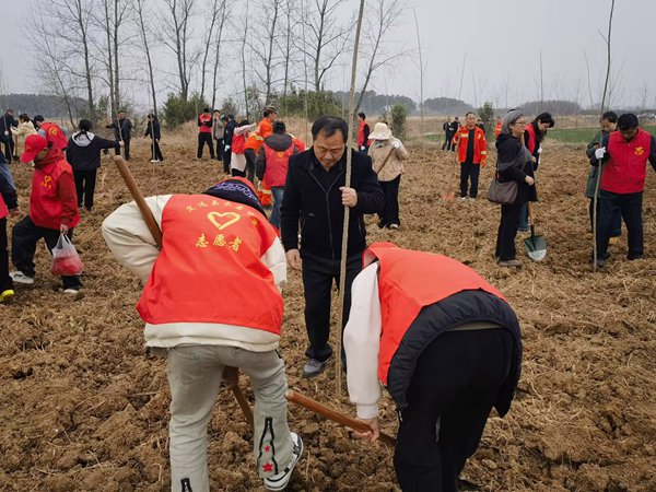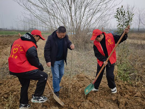 ~ 3月12日下午,定远县永康中学到青山东刘岗开展义务植树活动。学校党支部书记、校长董志友与参加活动的师生代表一起参加植树劳动。