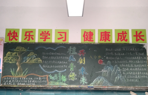 ~ 学校校团委利用校园广播向全校师生发出《爱绿护绿,从我做起》倡议,让同学们进一步了解植树节的来历以及植树的意义,鼓励大家争做绿化环保小卫士,爱护校园一草一木。各班分别以板报形式宣传倡导绿色发展理念,教室、办公室里也增添了一盆盆绿植,让每一个角落都焕发生机,绿意盎然。花园中,团员志愿者们热情高涨,分工协作,默契配合,有的为园中的树苗花草松土、浇水;有的修剪枝叶,铲除杂草,细心呵护树苗花草成长;有的挥锹铲土,亲手种下了一棵棵新苗。每一个环节都细致认真、一丝不苟。看着一棵棵新苗在微风中挺立,为校园增添了一道生机勃勃的绿色风景线,同学们脸上露出了欣慰的笑容。
