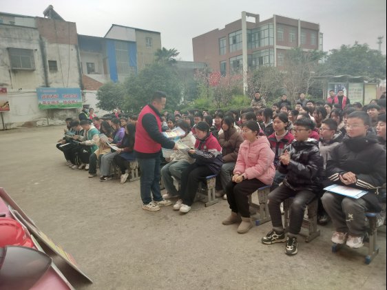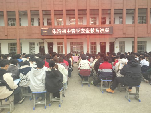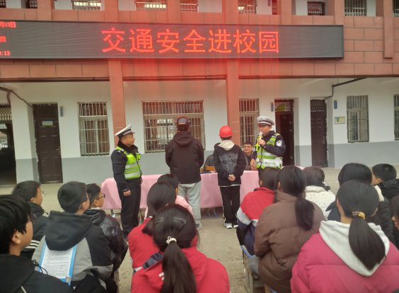 ~ 3月13日,定远县交警大队六名交警走进朱湾初中,开展了一场生动有趣的交通安全宣传活动,为全校师生送上了一堂别开生面的交通安全教育课,全校近240名师生齐聚教学楼广场聆听讲座。