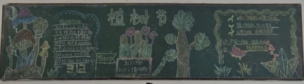~ 在热烈的互动中,学生们积极分享环保知识,交流日常生活中节水节电、绿色出行等环保行动。除此之外,学生们充分发挥创造力,制作了充满巧思的环保书签,上面写着环保标语、画着绿树,表达对绿色生活的向往。各班级的黑板报同样精彩,以植树节为主题,用缤纷色彩展现植树场景、森林之美和人与自然和谐相处的愿景,吸引众多师生欣赏。