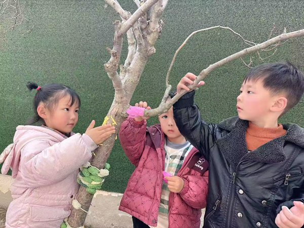 ~ 活动前,各班老师们通过课件、 ppt 等各种生动有趣的形式向孩子们介绍”植树节”的来历,植树的意义以及爱护小树苗的常识。 活动中,各年级都在老师的引导下用自己的方式庆祝植树节的到来,小班幼儿和充满生机的小树合个影,中班幼儿用自己稚嫩的小手装扮小树,大班的哥哥姐姐承担起除草、浇水的任务。孩子们用充满爱心的行动表达了他们对树木花草的爱护和祝福。