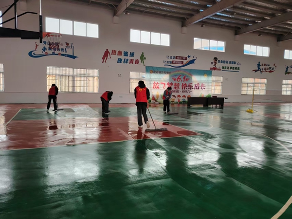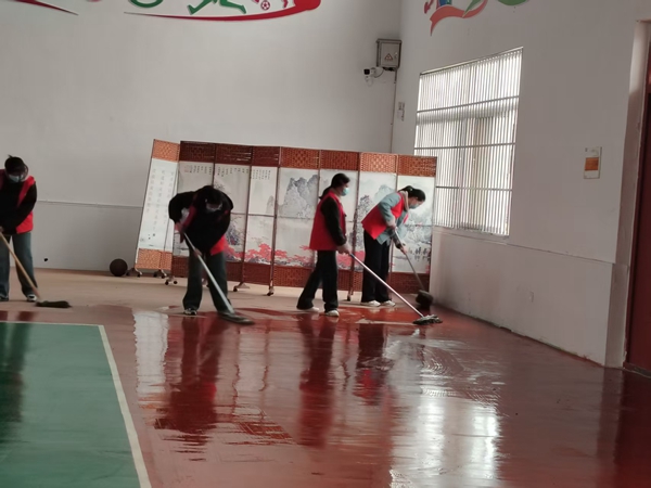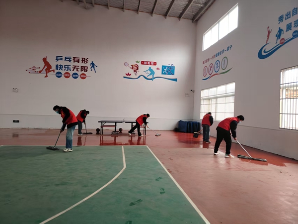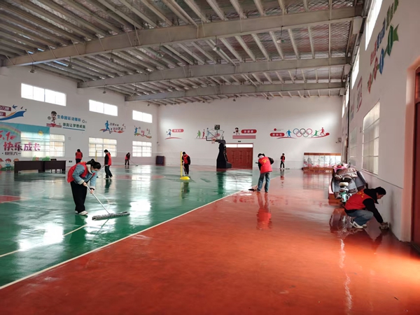 ~ 为弘扬奉献、友爱、互助、进步的志愿服务精神,推进学校学雷锋活动,3月15日,定远县三和学校团委组织学生志愿者开展学雷锋志愿服务活动,活动内容是打扫坐落于该校的全民活动中心体育馆馆内地面卫生。