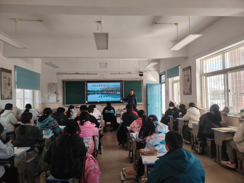 ~ 下午班会课,各班以世界森林日和世界水日两个节日为主题开展活动。班会活动让学生认识到地球的生命脉搏与森林与水紧密相连,了解当前世界森林现状、水资源危机和生态资源环境严峻形势,激发学生树立保护森林和水资源意识,以实际行动参与到植树造林和保护环境、节约和保护水资源活动中来,为建设绿色生态家园贡献力量。(图文:盛少堂;审核:钱维红;终审:蒋安奎)