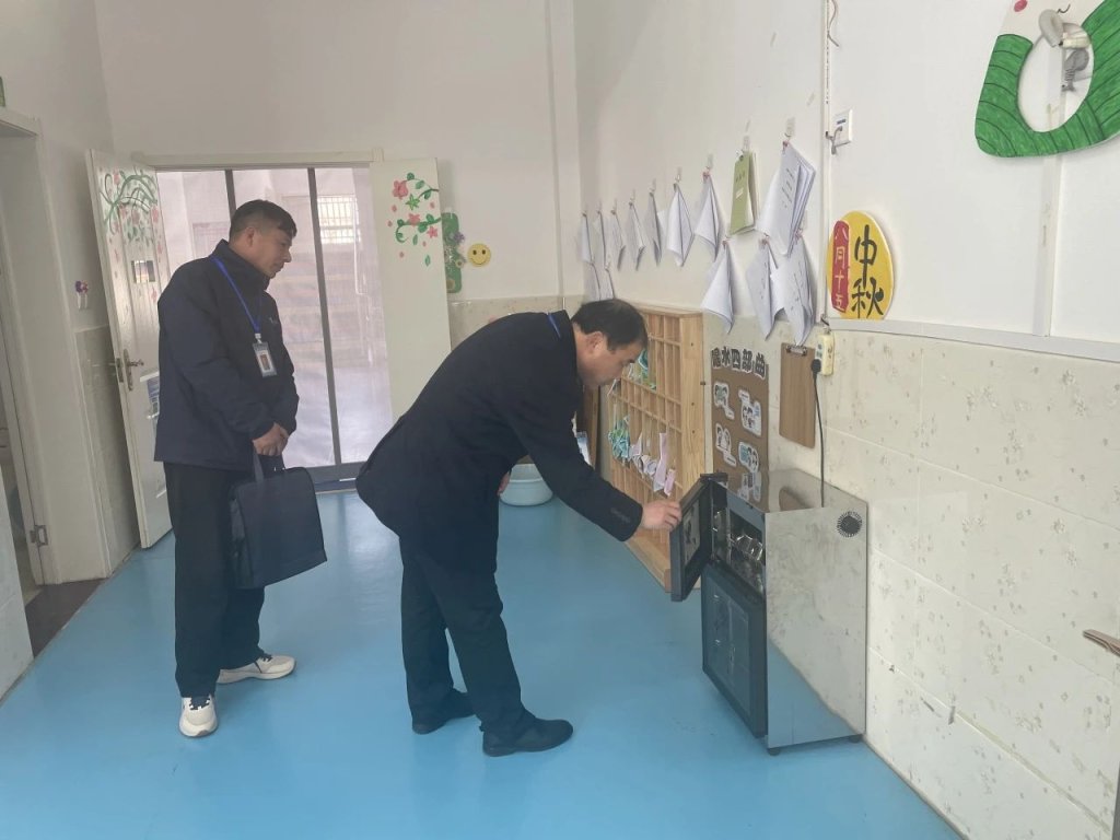 ~ 督导组认真听取张可庭校长关于校园安全工作的汇报。接着,深入学校食堂、操场、教学楼等重点区域,对校园设施设备、消防安全、食品安全等进行了细致检查。食品安全方面,深入食堂操作间,检查食材储存、加工流程等环节是否符合卫生标准。同时,对学校及幼儿园的安保措施进行评估,包括安保人员的配备、监控系统的运行等。随后,督导组对校车安全隐患进行排查,应急出口开启顺畅,安全锤、灭火器配备齐全且均在有效期内,确保紧急情况下能够正常使用。