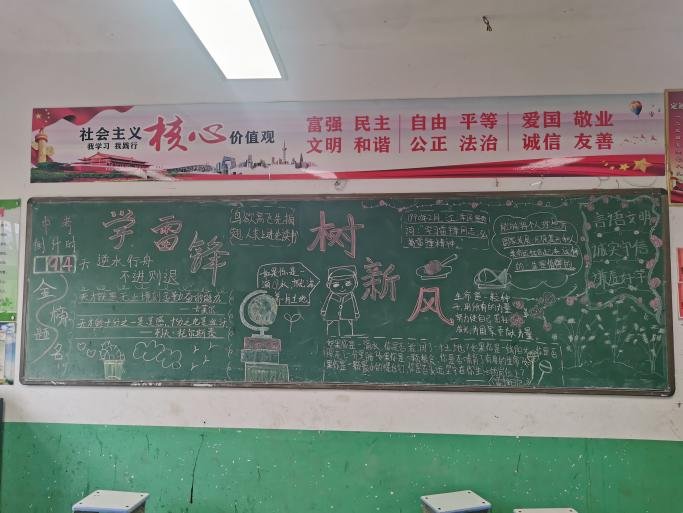 ~ 同时,学校还开展了黑板报评比、清理校园环境、植树等活动。各班围绕学雷锋主题精心设计,用五彩的画笔描绘出雷锋的光辉形象,书写下雷锋的感人故事,宣传雷锋精神的时代价值。这些精美的黑板报不仅美化了校园环境,也成为了同学们学习雷锋精神的生动课堂。