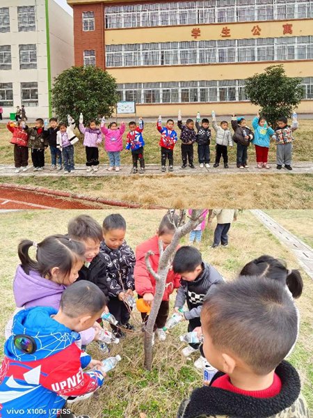 ~ 接着老师们组织全园小朋友带上工具给小树浇水。