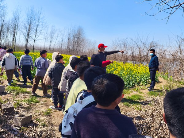 当天下午一点半,同学们精神抖擞地在操场集合,排着整齐的队伍,迈着轻快的步伐,向着目的地进发。一路上,同学们欢声笑语不断,如欢快的小鸟般雀跃。他们欣赏着沿途的美景,嫩绿的新芽、盛开的花朵、波光粼粼的溪流,感受着大自然的神奇与美妙。老师们也融入其中,适时地为同学们讲解自然知识,引导他们观察和思考,让这次踏青之旅不仅是一次游玩,更是一次生动的自然课堂。途中,有的同学体力不支,但在同伴和老师的鼓励下,咬牙坚持;有的同学主动帮助他人背包,尽显友爱互助的精神;还有的班级唱起了欢快的歌曲,歌声在春日的田野间回荡,为这次徒步增添了许多欢乐的氛围。经过两个多小时的徒步,同学们有序地返回了学校。