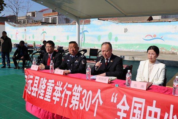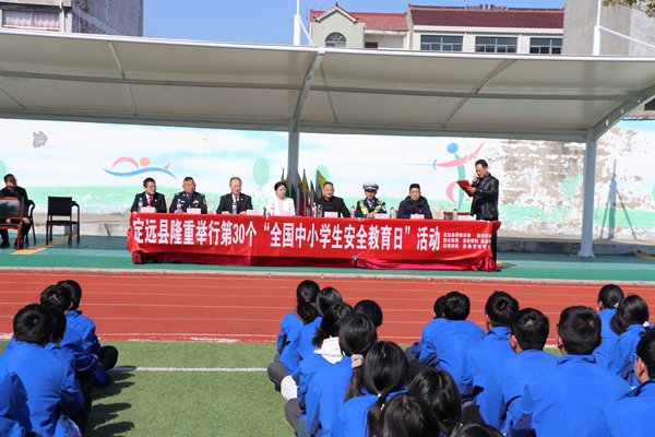 ~ 春光正好读书时,法润校园护成长。3月21日下午,池河中学操场上掌声阵阵,由中共定远县委政法委牵头,联合县法学会、检察院、法院、司法局、教体局、公安局等七部门共同开展第30个“全国中小学生安全教育日”法治安全教育专题宣传活动在此拉开帷幕。活动通过专题讲座、案例剖析、互动问答等形式,为全校600余名师生送来干货满满的法治安全教育“大礼包”。