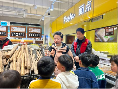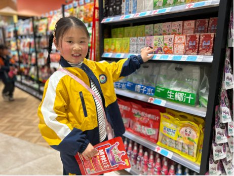 ~ 走进超市的瞬间,孩子们的眼睛瞬间亮了起来。手持10元预算和购物清单,他们分组开启”采购大作战”在蔬果区踮脚辨认黄瓜与西葫芦,轻嗅柠檬的清香;”酸奶买二送一?那我们可以多拿一盒!”孩子们对比价格标签,掰着手指计算找零。