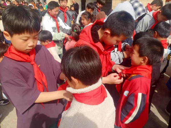 ~ 在仪式上,新队员们满怀激动地佩戴上了鲜艳的红领巾,并在队旗下庄严宣誓,表达了对少先队组织的忠诚和对祖国的热爱。学校校长向新队员们表示了祝贺,并希望他们能够牢记入队誓言,勤奋学习,团结友爱,积极进取,为班级和学校增光添彩。
