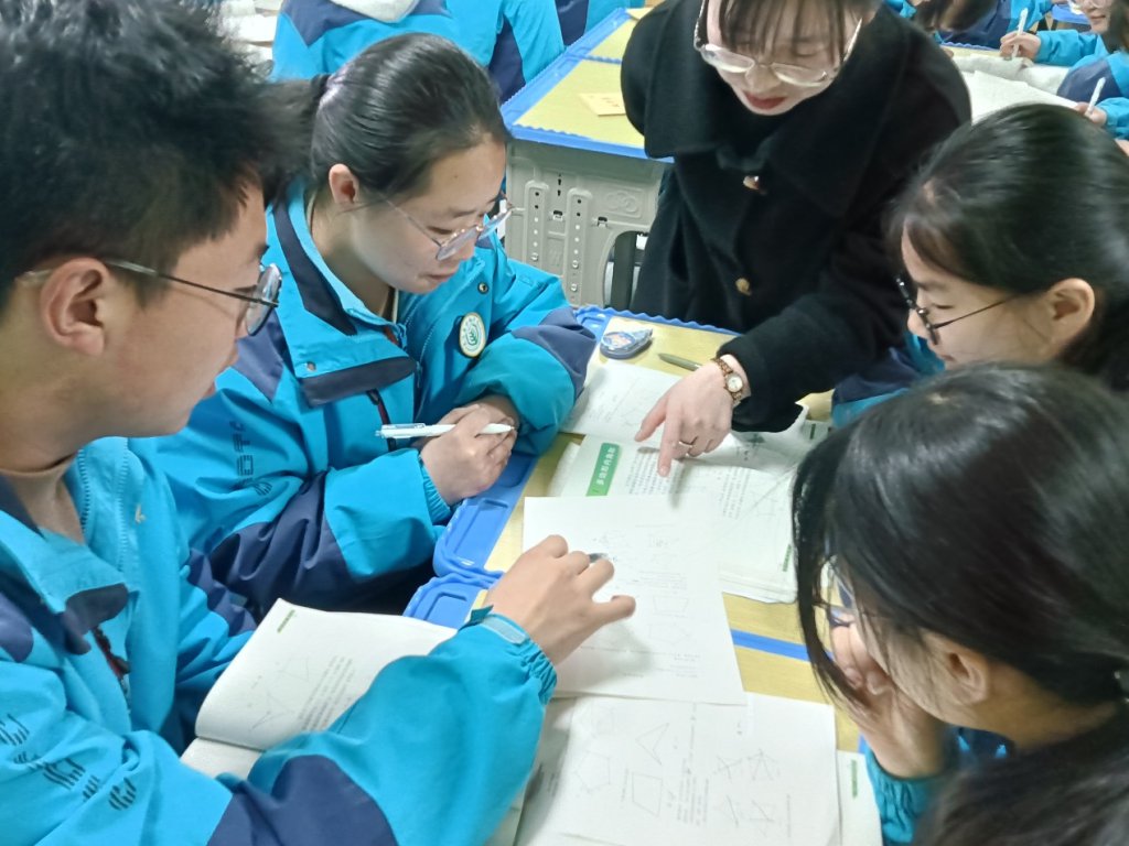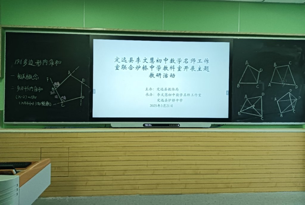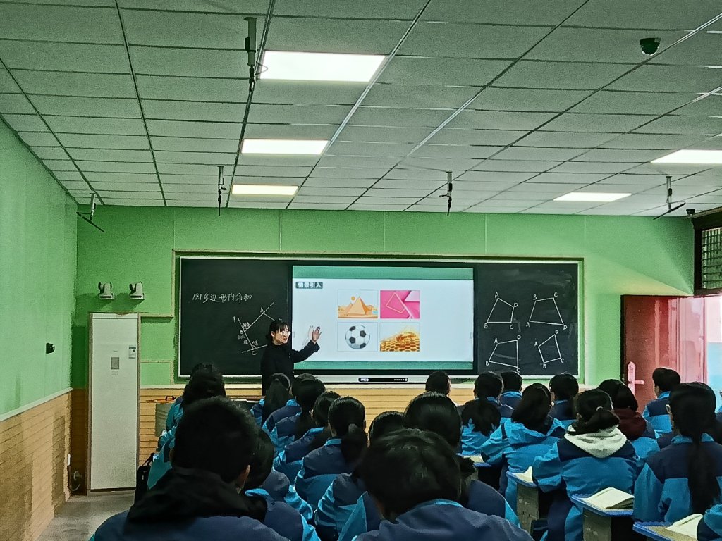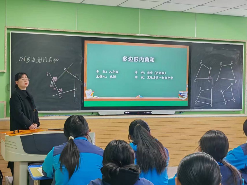 ~活动伊始,名师工作室核心成员、定远县第一初级中学朱颖老师带来一节《多边形的内角和》示范课。她以生活问题为切入点,引导学生通过小组合作、动手画图、自主探究等方式,层层剖析多边形内角和的变化规律。课堂上,学生从“被动听讲”转为“主动思考”,在互动中感受到数学的趣味与逻辑之美。朱老师巧妙运用信息化教学手段,通过直观演示,将抽象定理具象化,帮助乡村学生突破空间想象难点。课堂气氛活跃,学生踊跃发言,展现出浓厚的学习兴趣。
