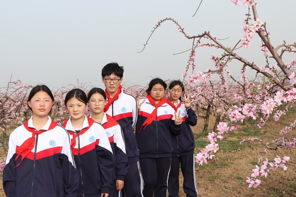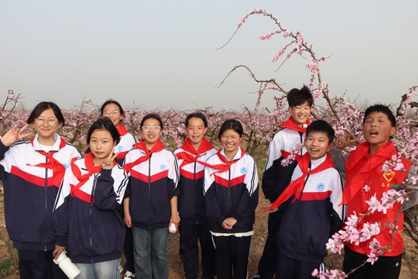 ~ 天河社区南杨村满坡桃花竞相绽放,灿若云霞,美不胜收。 下午,同学们满怀期待地在校园集合。随着一声令下,远足拉练正式开始!一路上,春日的暖阳洒在身上,温柔又惬意。田野里,嫩绿的麦苗在微风中轻轻摇曳,仿佛在向同学们招手问好。