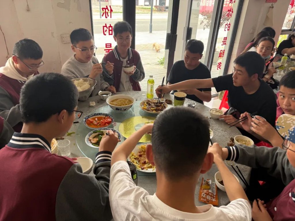 ~ 中午,同学们在小岗村分班集体用餐,餐桌上的孩子们,井然有序,彰显了英华学子风采。
