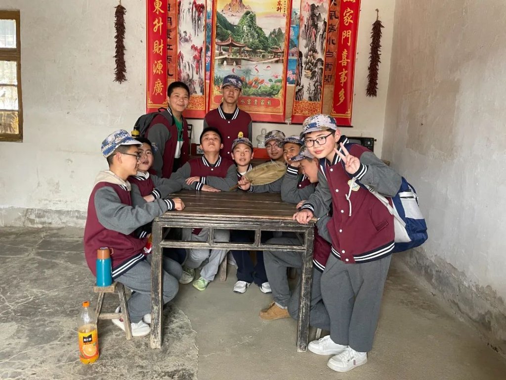 ~ 本次研学的第一站,学生们参观了当年农家。这里保存着许多传统的农耕工具和农家生活场景,让学生们仿佛穿越到了那个艰苦而又充满希望的年代。