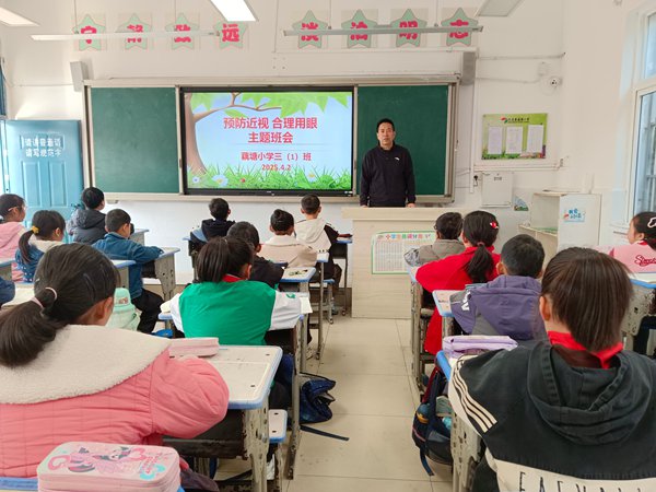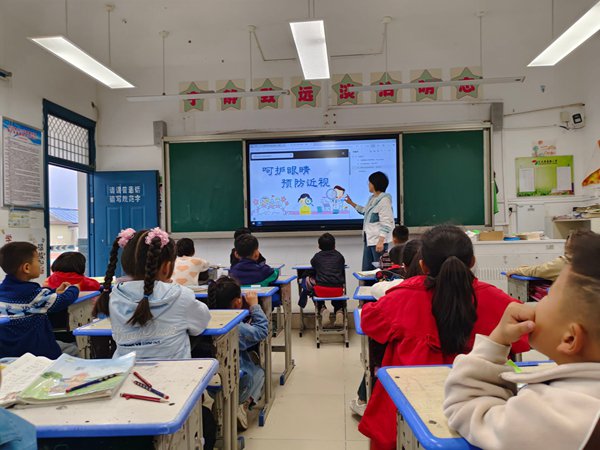 活动期间,各班级同步召开主题班会,班主任通过图文科普科学用眼知识。全体学生集中观看防控近视专题视频,直观了解近视成因及预防措施。该校还组织眼保健操规范评比,各班教师逐一指导穴位按揉要领,确保学生掌握正确护眼方法。校园电子屏滚动播放"有效减少近视发生,共同守护光明未来"等宣传标语,营造浓厚防控氛围。